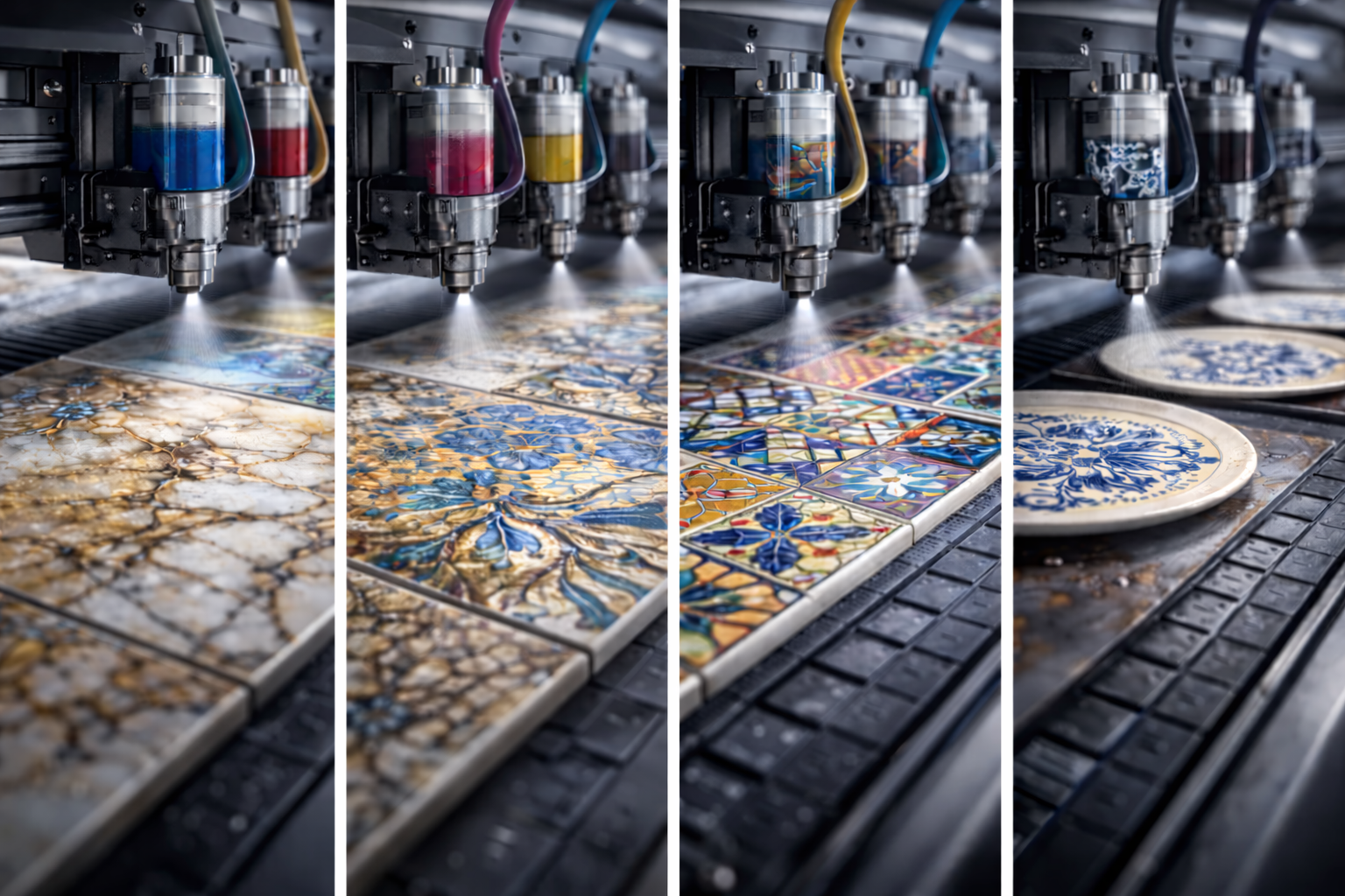 These materials support digital inkjet printing technologies widely used in ceramic tile production and decorative ceramic surfaces.